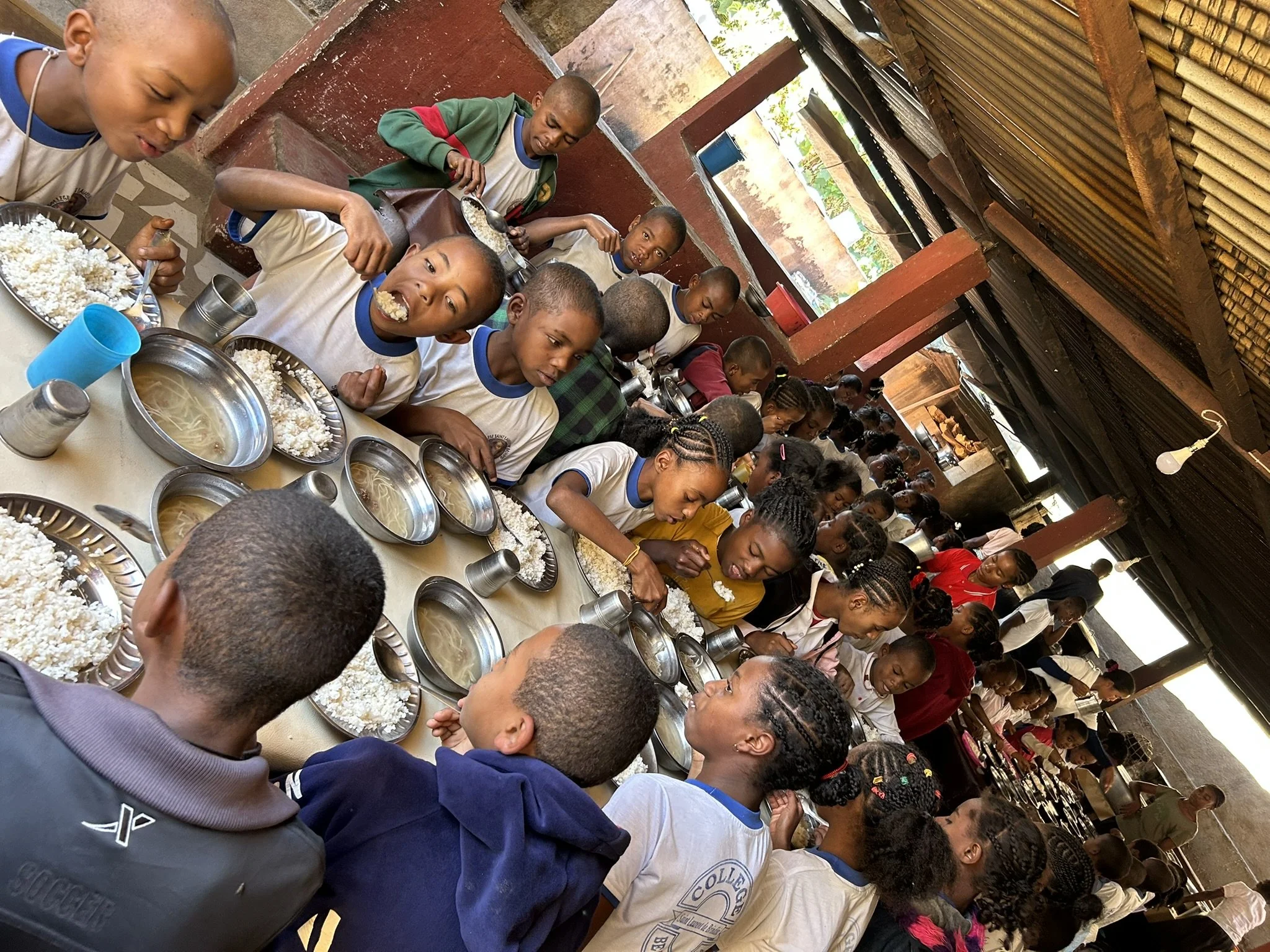 We invest in infrastructure: solar energy, shared spaces for dining, study, play, dormitories, toilets, and showers.